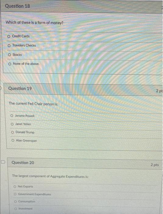 Solved Question 18 Which Of These Is A Form Of Money O Chegg Com